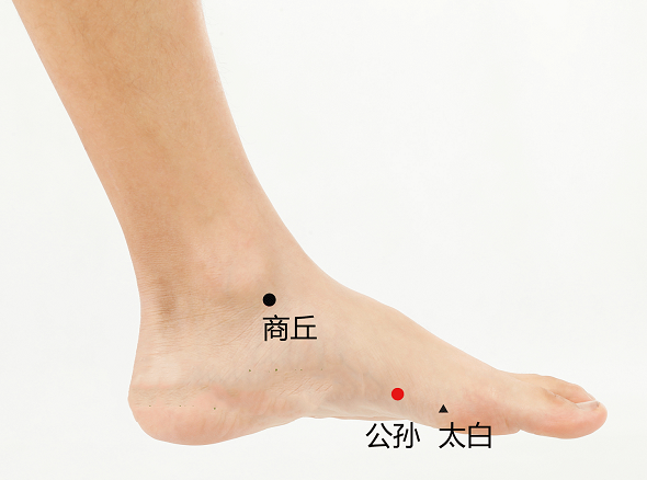 调理足太阴脾经的公孙穴,可改善手麻,若配以心包经的内关穴同时使用,效果更佳。(左右脚内侧)