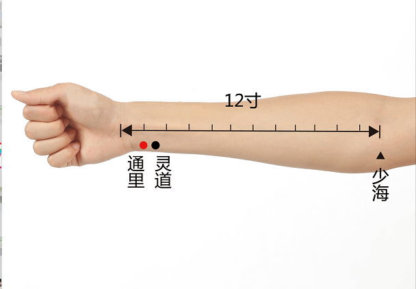 位置:通里穴在腕横纹上一寸处。紧挨着灵道,下面还有阴郄穴和神门穴。因为它们挨得近,所以揉的时候,没必要非得找通里,如果揉旁边的灵道更敏感,那就多揉灵道;而揉阴郄时特别敏感,就多揉阴郄。这几个穴位就像兄弟姐妹一样,虽然各自有侧重,但总的功用都是调节人的情志和心脏本源疾病的。