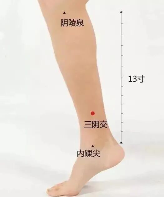 三阴交通肾脾肝,活血通经效不单