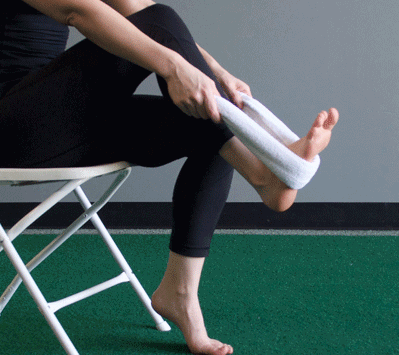 脚后跟疼痛时,可以用“毛巾拉伸”的方法来缓解,用一条毛巾环绕患侧足底,双手握住毛巾进行脚踝拉伸,这样可以使周围肌肉和韧带放松,疼痛也能缓解。