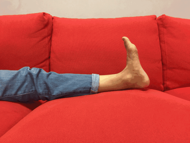 采取坐着或躺着的姿势,放平并稍微绷紧双腿,双足向内、外做“勾脚”的动作,每次做2~3分钟即可。