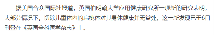 国外也有研究表明:大部分情况下,切除儿童体内的扁桃体对其身体健康并无益处。