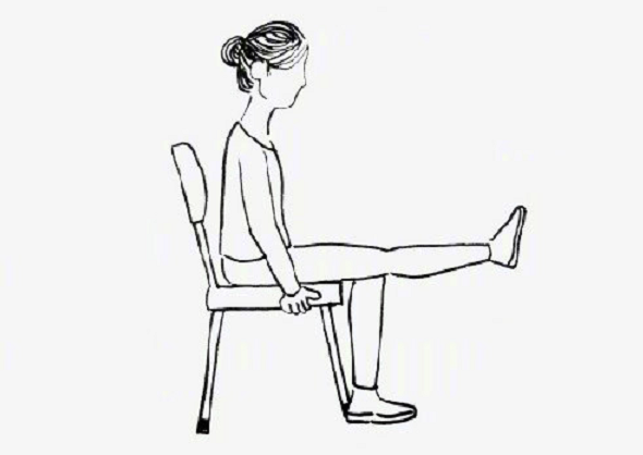 坐在椅子上,抬起一条腿水平伸直,坚持5~10秒后放下,再换腿做。