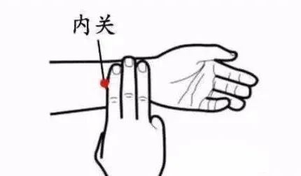 内关穴位于手腕正中,距离腕横纹约三横指处,在两筋之间取穴。
