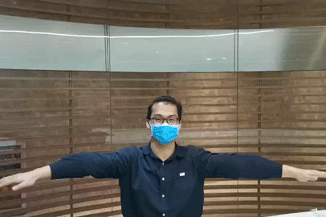 3、W: 手掌朝前往后伸,后伸肩关节,做类似扩胸的动作,尽可能往后伸,伸搭配极限维持一段时间。