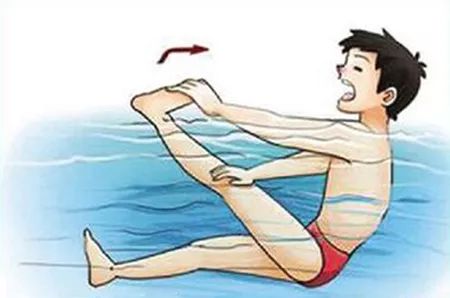 先深吸一口气憋住,身体仰浮,用手抓住脚趾向身体方向拉,用另一手向下压膝盖,使腿后部伸展。缓解后立刻上岸,继续按摩休息。