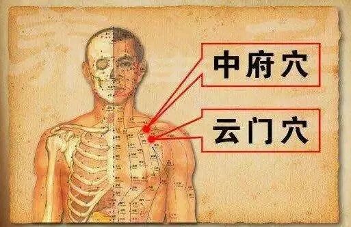 3. 中府穴:消除肩膀酸痛的重要穴位,主要治疗由上身前弓或者长时间穿高跟鞋走路导致的肩膀酸痛。其位置在锁骨末端向下约两指宽的地方。按压方法,用手微微握住肩膀,将拇指放在中府穴上轻轻按压。