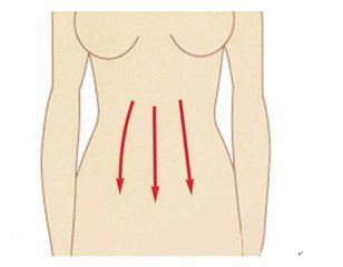 从心窝开始推至下腹部,既任脉,任脉旁开既是胃经,从上腹向下腹部推,最后由两边斜向下腹推,推的过程中有硬结、气包、水团之类的要用心细细地揉开,这有可能就是你若干年后病症的病灶。推的时间5~10分钟即可。
