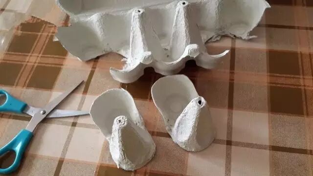 1、用鸡蛋盒剪好鸡的身体。
