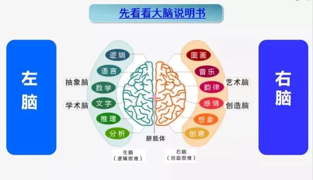 右脑教育的概念是一个新概念,它起源于脑科学的进步,随着人类对大脑的认知越来越丰富的情况下,大脑无限的潜能终于慢慢为人们所认识。大脑各区域的分工是不一样,美国加州理工学院的罗杰•斯佩里教授提出一个左右脑分工的大脑模型理论,揭示左右脑不同的工作原理,并因此获得了诺贝尔生理学医学奖。根据这一分工理论,左脑主要负责逻辑,判断,分析,线性,语言,符号,选择等功能,右脑主要负责空间感,节奏感,图像,想象,色彩,音乐,直觉等功能。而研究表明右脑具有巨大的潜能没有被利用。