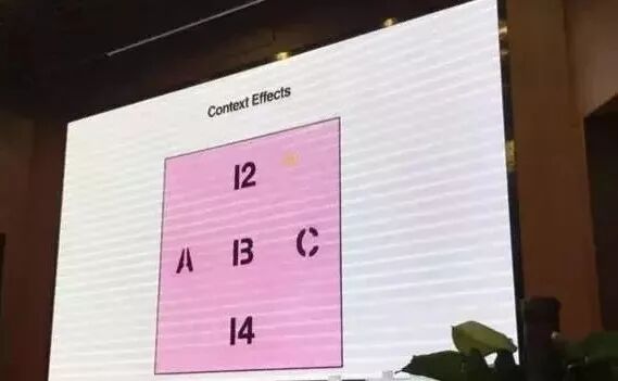大家看这张图,上面有12、13、14三个数字对不对?但是当图中出现了A和C的时候,你认为中间的那个是13还是英文B?同样的讯息,因为你的背景知识不懂,所以你的解读就会不同。