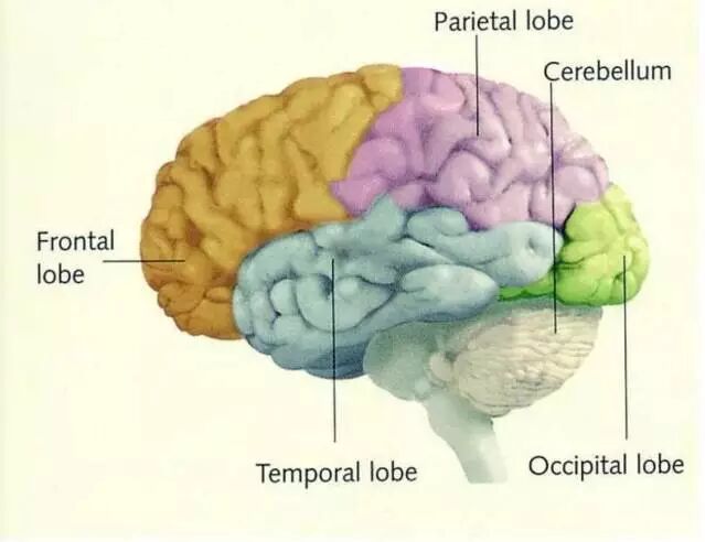 她告诉大家,大人是需要知道孩子的大脑是怎么回事:以下这张图上不同颜色代表的区域其实都有不同的功能,比如黄色的部分是额叶,也具有大脑发展中最高级的整合功能,紫色和灰色交接的地方,是听觉值。