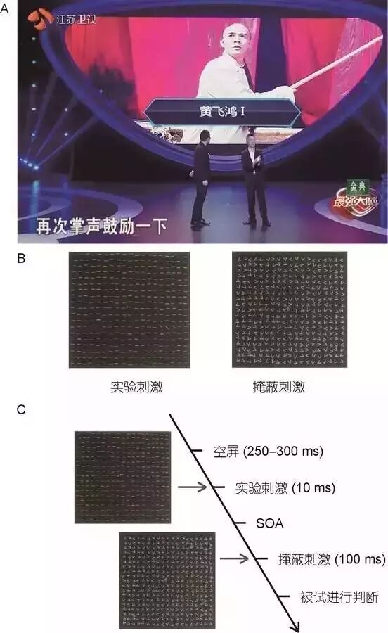 在知觉学习的经典实验范式中,由Karni和Sagi最早使用的纹理辨别任务(TDT)与曹全全的挑战最为相似,同样都是在极短的时间内呈现刺激然后进行视觉辨别和判断。从视觉辨认角度来说,TDT的实验任务可能比曹全全的挑战任务还要困难,实验结果证明通过10天左右的知觉学习训练便可以让每一个普通人具备类似曹全全的视觉辨别能力。