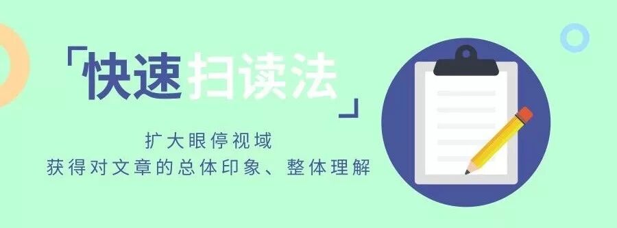 扫读法是指对文章内容一目数行、一目十行地扫瞄,以大容量获取信息的一种快速阅读方法。