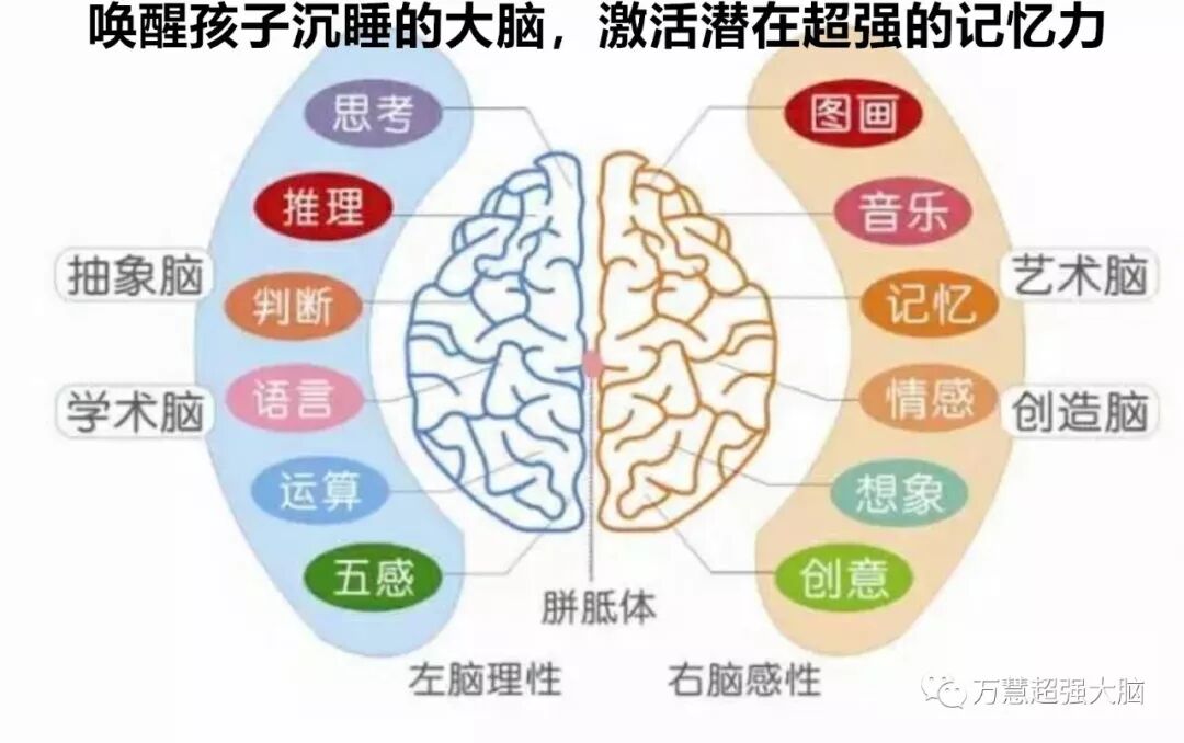答:右脑的开启是指右脑被开发应用的能力,每个人就像一颗种子,都具有无限的能力,每个人的大脑都具有无限发展的可能性。孩子在出生的时侯,它的大脑就已基本发育完成。如果在这个时期能给孩子在肢体活动、感官接触、语言互动交流上获得各种刺激,可以促进“大脑树状轴突”的发展,强化幼儿大脑及心智功能,并发展为具有能不断学习思考、系统化建构知识网络的大脑。