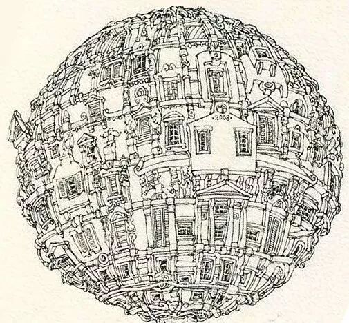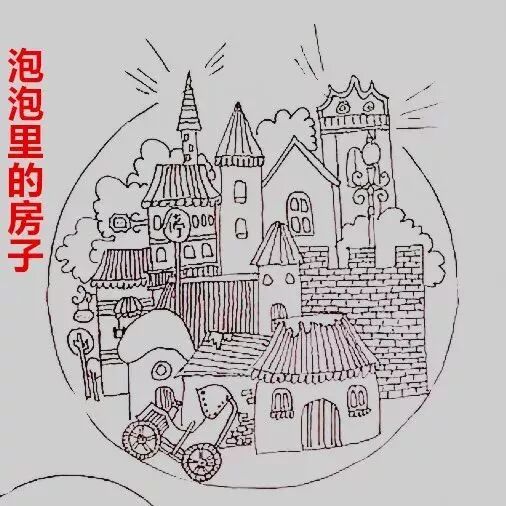 我在画‘泡泡和房子’时,我在想:把房子画在泡泡里面,下一步会发生什么?把房子长在泡泡外面,下一步会发生什么?(上图)(大家可以尝试想下泡泡外的结局。)