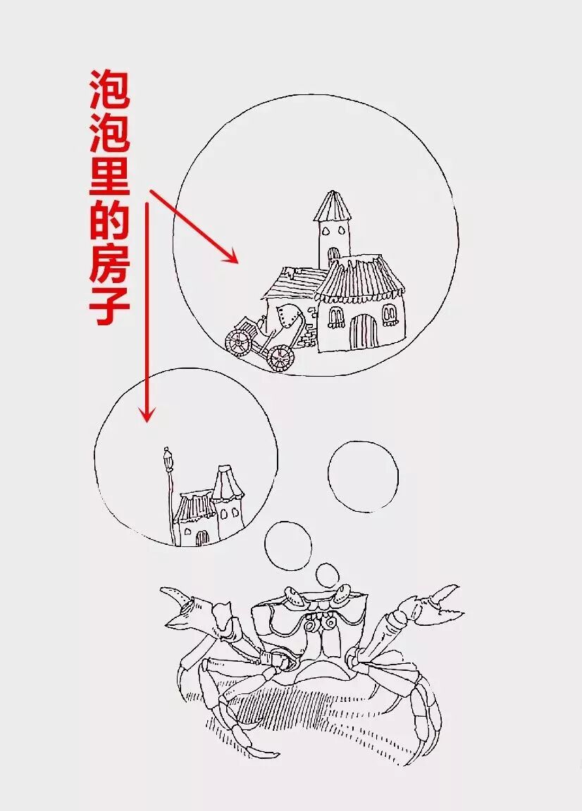 上面的《螃蟹与房子》只有想象,没有想法。随着信息的不断收集,我产生了很多想法。给大家分享其中一个想法。