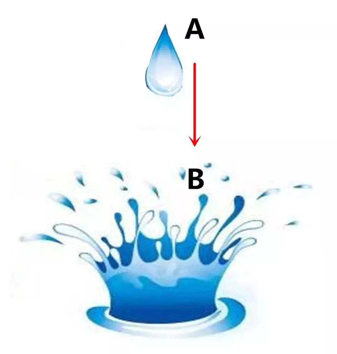 我们从A的角度思考,B是被A炸成很多水滴的。我们换个角度思考,从B的角度思考,为什么B拥有很多水滴呢?难道水滴B是笼子?关了很多水滴?(下图)