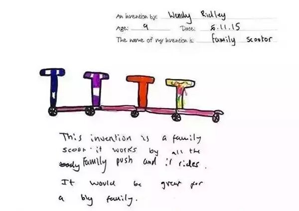 9岁的Ridley从双人自行车中得到启发,设计了可以多人玩的滑板车...