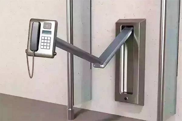 (轮椅太大推不进电话亭,当自动感应键感应到轮椅之后,电话机就会自动申出来方便残疾人使用)