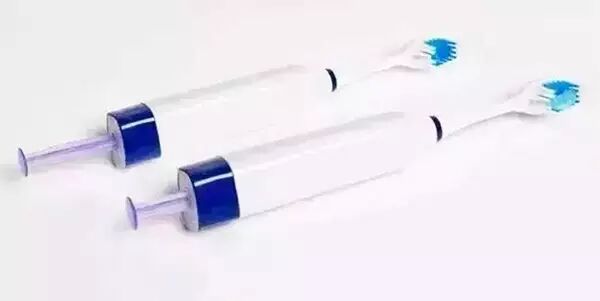 (牙刷的手柄中装着牙膏,平时只要按一下按钮,牙膏就会自动挤到牙刷上)