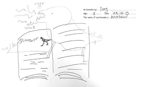 9岁的Tony是个小恐龙迷,他希望如果恐龙能从书中跑出来,走路、吼叫、甚至跟他合照……