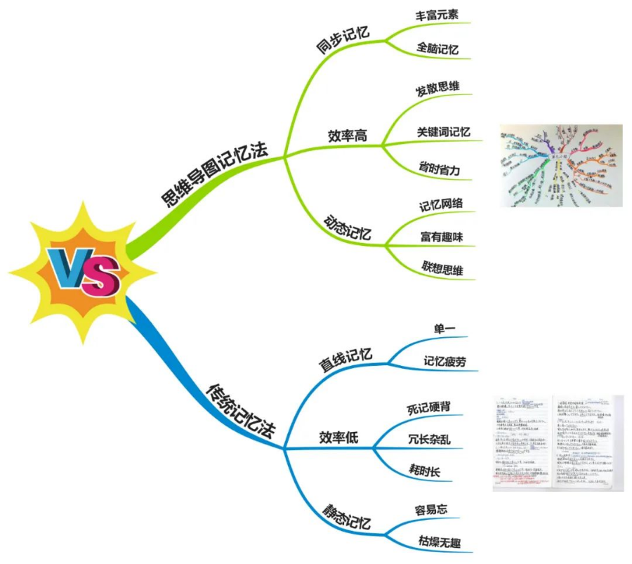 与传统笔记相比,思维导图对我们的记忆和学习产生的关键作用有: