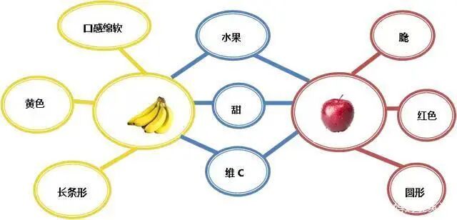 比如像下面这样,一张图了解香蕉和苹果的相同点和不同点。