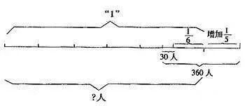 从图中可以清楚看出,(360-30)人与全校人数的(+)相对应,求全校人数用除法计算。列式为: