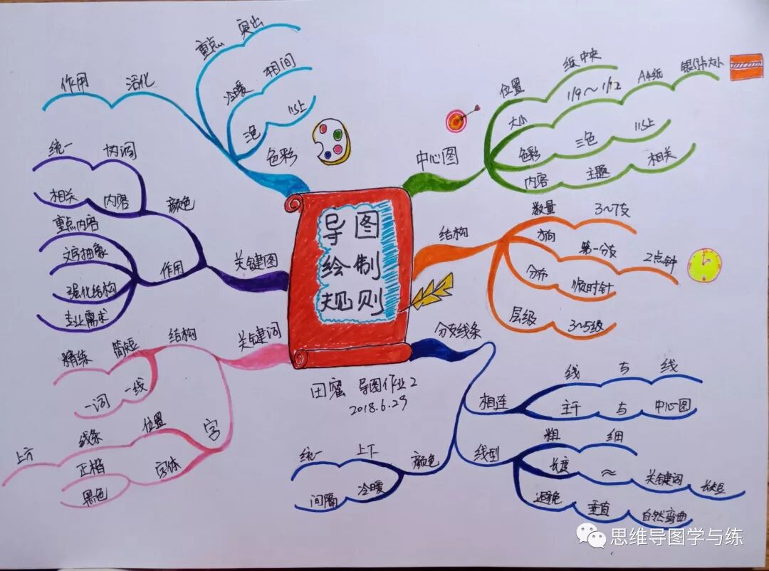 在学习的过程中,看到曾经和我一样是绘画小白的学友们在不断的努力突破自己,看到了那么多优秀的学霸也都在非常努力的学习,他们感染了我,带动了我。我想尝试着突破自己,做自己曾经喜欢却不敢挑战的事情。就这样,对思维导图观望了许久的我终于鼓起勇气敲开了手绘导图的大门。