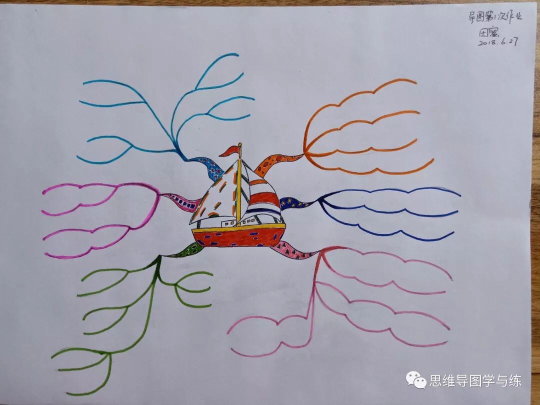 导图第1次作业,老师给了一个范本,要求照着临摹,中心图可以自选。我选了一个帆船,虽然比较简单,但寓意一目了然,期待着本次导图的学习之旅能够一帆风顺,坚持走到终点,有始有终。
