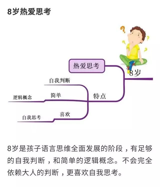 八岁是孩子思维语言发展的阶段,他们会有足够的自我判断和一些逻辑概念,他们不会完全依赖大人给的判断,他们更喜欢自己做决定,更喜欢独立思考。