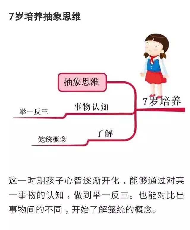 七岁的孩子心智逐渐会开化,能够通过对某事物的认知,做到举一反三。能充分的对比事物和事物之间不同的特征。