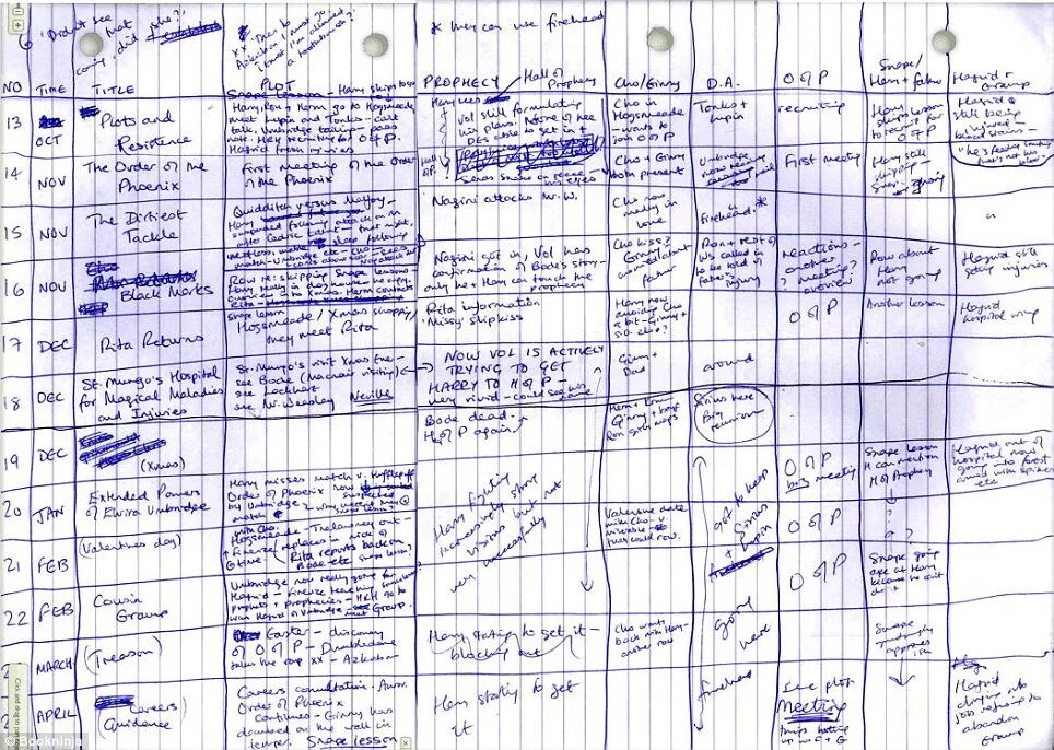 J.K.罗琳写作哈利波特的时候用到的情节规划表