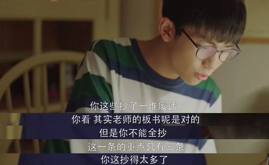 ① 有的学生不懂得抓重点,老师说的每一句话、写的每一行板书,他们恨不得都全盘抄下来;