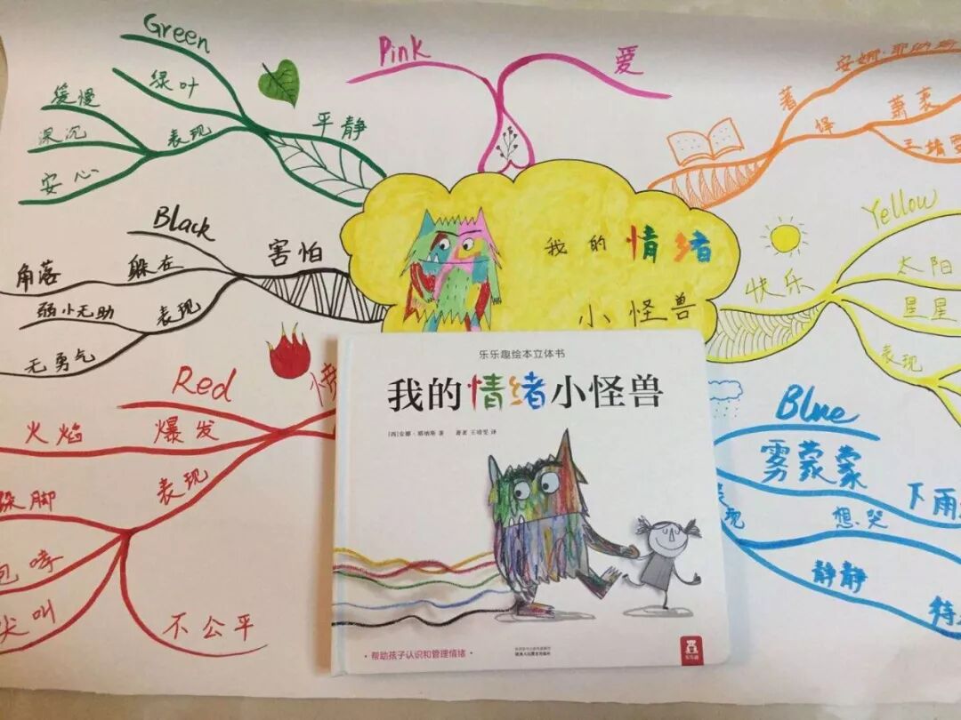 或者像我一个朋友,带着孩子用思维导图来梳理绘本的内容。