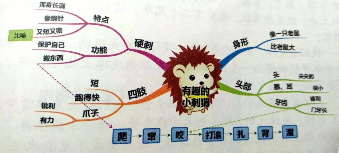 举例:把一篇“有趣的小刺猬”文章,变成一张思维导图。