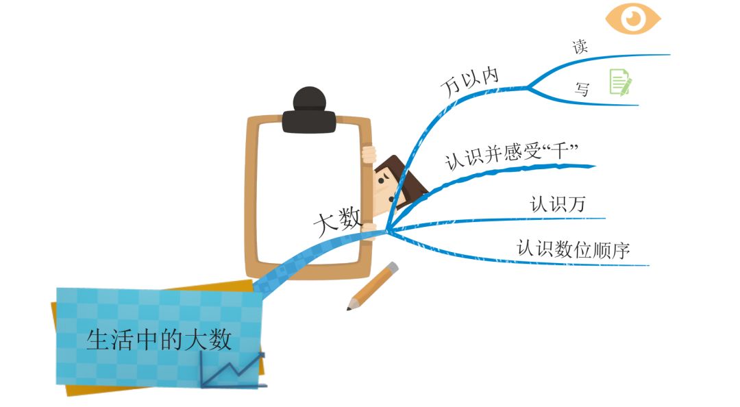 便于理解大数的实际意义,借助直观模型,从日常生活中体验抽出数的过程。理解大数时,对位置的概念,以及满十进1的规律熟悉掌握。