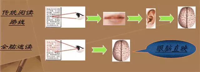 普通阅读,是一种“音化”的阅读。即使在默读时不念出来,但每个字的读音都是在大脑里反映出来的。文字信息由视觉中心传至说话中心,经发音器官发出声音传至听觉中心,再由听觉中心传到阅读中心,最后才理解文字的意义。这样曲折迂回的路线太长,不仅费时费力、易疲劳,而且影响到理解和记忆的效果。一眼看到并识别的景物,若用声音文字来描述,那得多慢啊!