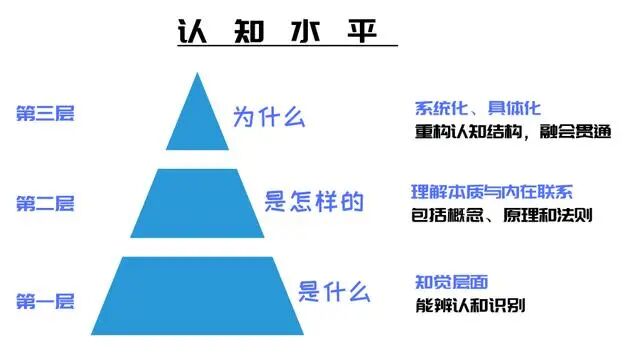 第二个层次,对事物的本质与内在联系的理解,包括概念、原理和法则的内涵,知道它“是怎样”;