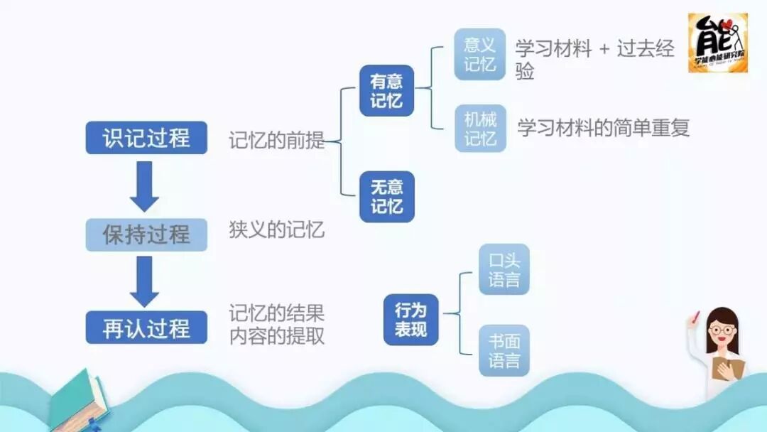 记忆是一个识记——保持——再认的过程。注意可分为有意和无意,所以记忆也有有意和无意之分。