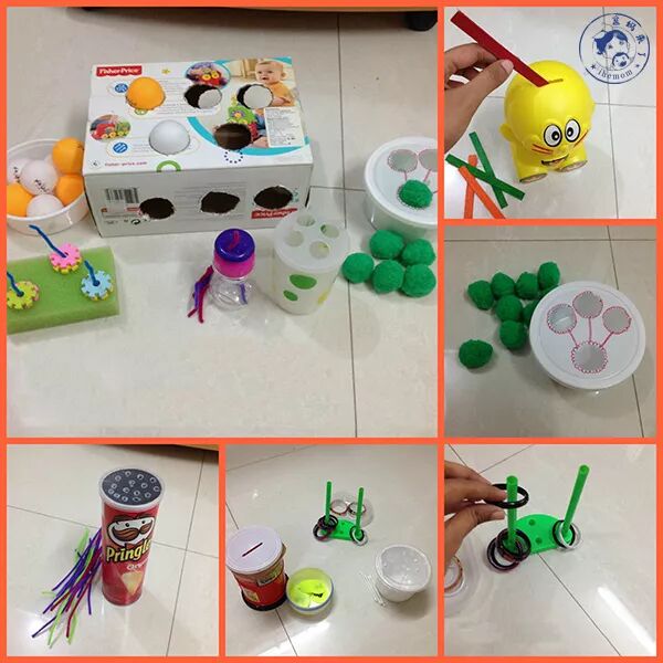 孩子用手握住物体,将物体放入容器,两个过程可以很好地让孩子感受到物体的形状与大小。
