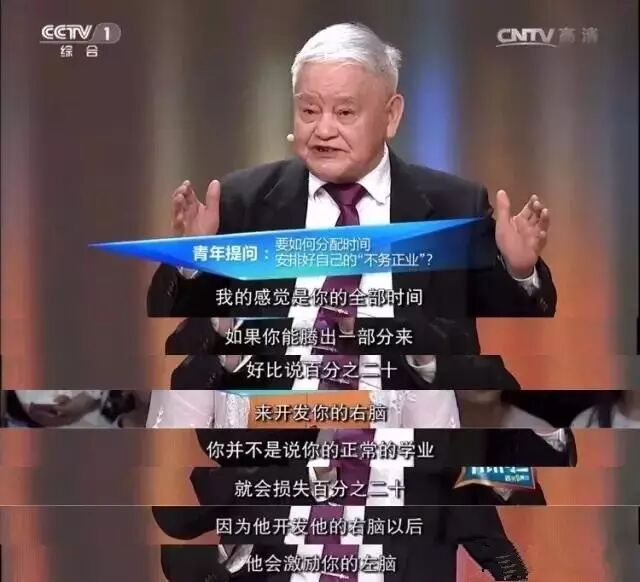 CCTV1撒贝宁主持的《开讲啦》,邀请了新中国第一位飞机总设计师程不时,程老在节目中提到了对中国航空事业贡献,以及强调了开发右脑的重要性。