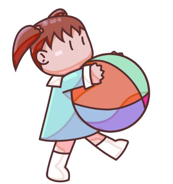 玩法:爸爸妈妈将双手抬起围成圆圈,让孩子将皮球投进父母双手围成的篮球筐,篮筐要比孩子的身高高一些。可以先让孩子离近一点,后面再慢慢的拉宽距离。