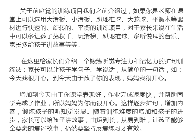 因此前庭觉失调直接影响孩子的听觉专注力、听觉记忆力等。