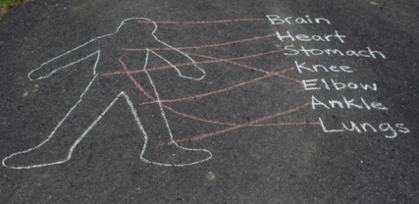 认识身体:在这个小游戏中,可以画出孩子们的身体轮廓,然后在轮廓外列出身体部位,请它们在单词与该部位在身体上的位置之间连线。
