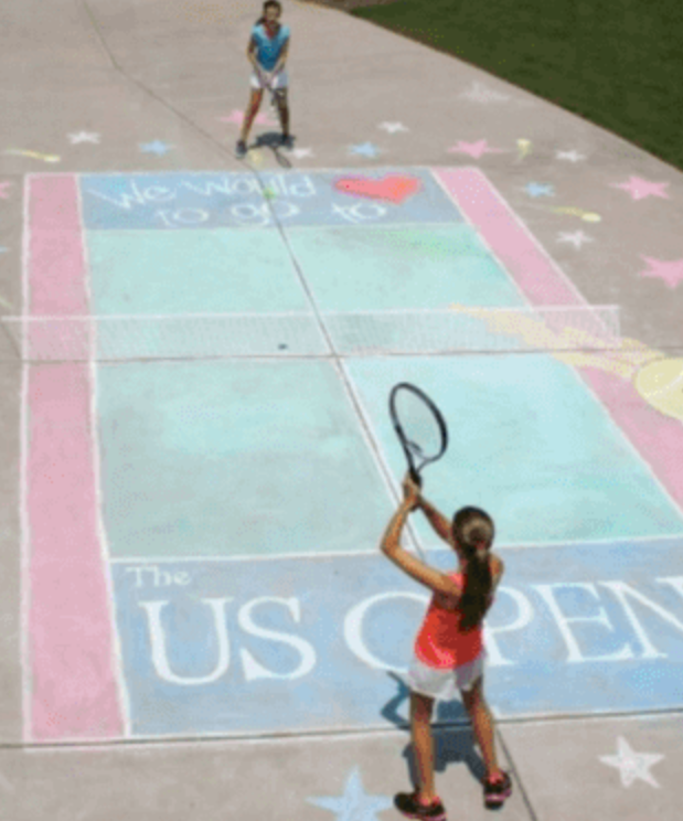 可以让孩子们根据自己的想象力画一个网球场、排球场或者篮球场,然后叫上几个小伙伴,来一场大汗淋漓的运动比赛。