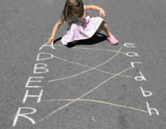 分别写下想要学习字母的大写和小写形式,让孩子们进行连线匹配。