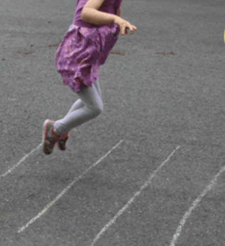 画一系列的水平线,看着他们跳得越来越远,然后标记下每次跳跃的着陆点,让小朋友们比比看,也可以尝试一下向后跳或者单腿跳来增加乐趣。