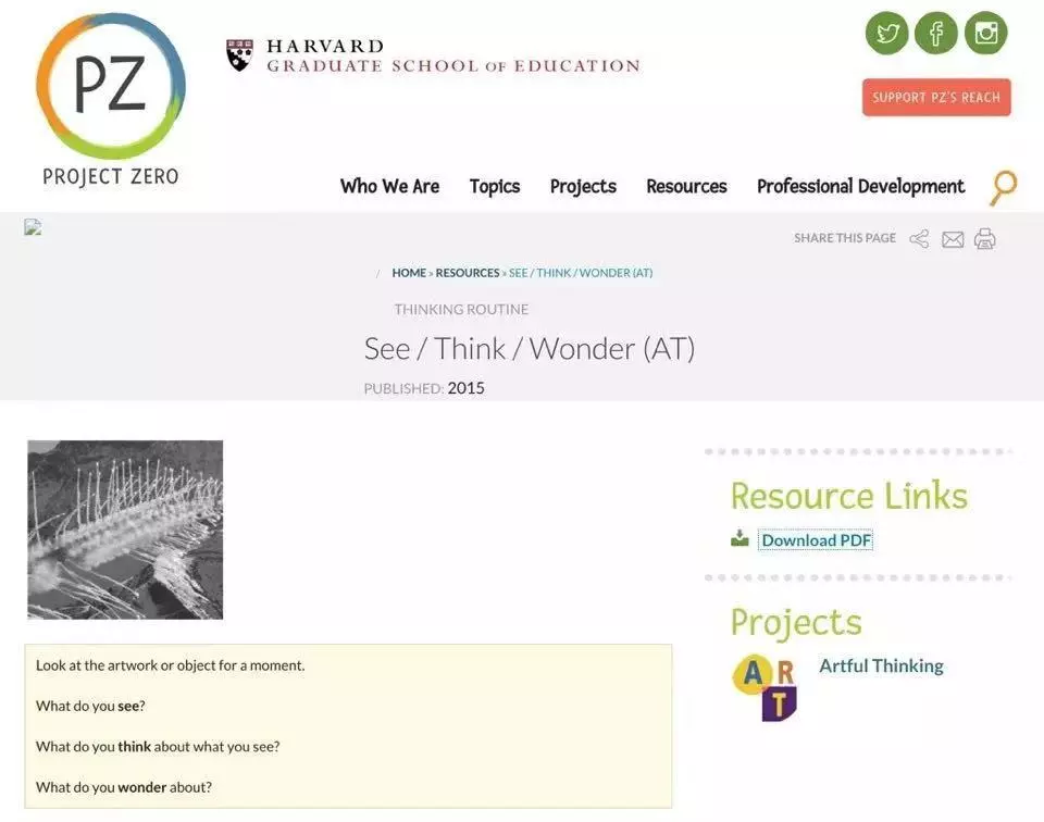 对于“可视化思维”的运用,哈佛大学教育学院的专家们提出了:See-Think-Wonder发散思考三部曲,来帮助孩子建立自己独立的思维方式。思维方的改变才是是提升专注力的根本,这套方法已被广泛纳入美国中小学教学中。
